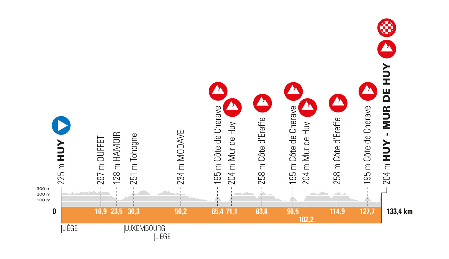 De mannen krijgen dit jaar, in vergelijking met 2021, een ietwat zwaardere uitgave van de Waalse Pijl op hun bord. De finish ligt traditioneel op de Muur van Hoei (1,3 km aan 9,6%), maar het peloton trekt gedurende de lokale ronde in de finale ook telkens weer over de Côte de Cherave (1,3 km aan 8,1%) en de Côte d’Ereffe (2,1 km aan 5%) op weg naar Hoei. Julian Alaphilippe hoopt er zijn vierde zege in vijf jaar tijd te boeken.