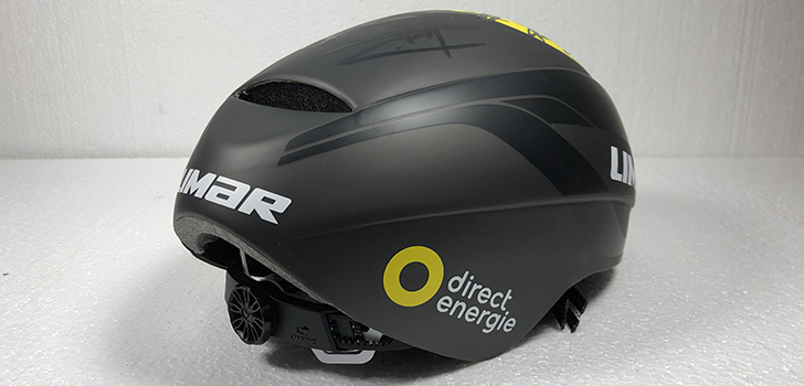 Zijn nieuwe team rijdt met de helmen van het merk Limar. De van oorsprong Italiaanse fabrikant heeft een uitgebreid assortiment met verschillende modellen, kleuren en types. Naast Direct Energie rijden ook de coureurs van Astana met deze hoofdbeschermers.