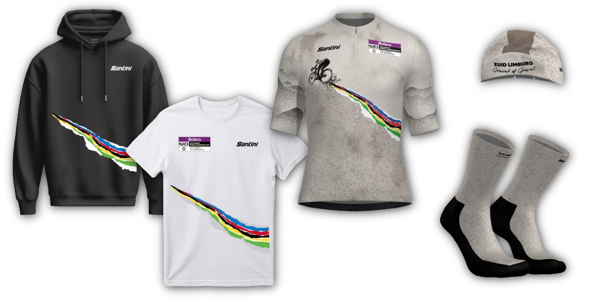 Het WK Gravel in Zuid-Limburg is een uniek evenement waarvoor ook wielerkleding is gemaakt, met speciale opdruk van het 2025 Bolero UCI Gravel World Championships. Die merchandise is in het weekend van 10-12 oktober alleen verkrijgbaar op locatie. Je kan daar onder meer het wielershirt (€90,00), de hoodie (€70,00) en de cap (€19,00) aanschaffen.