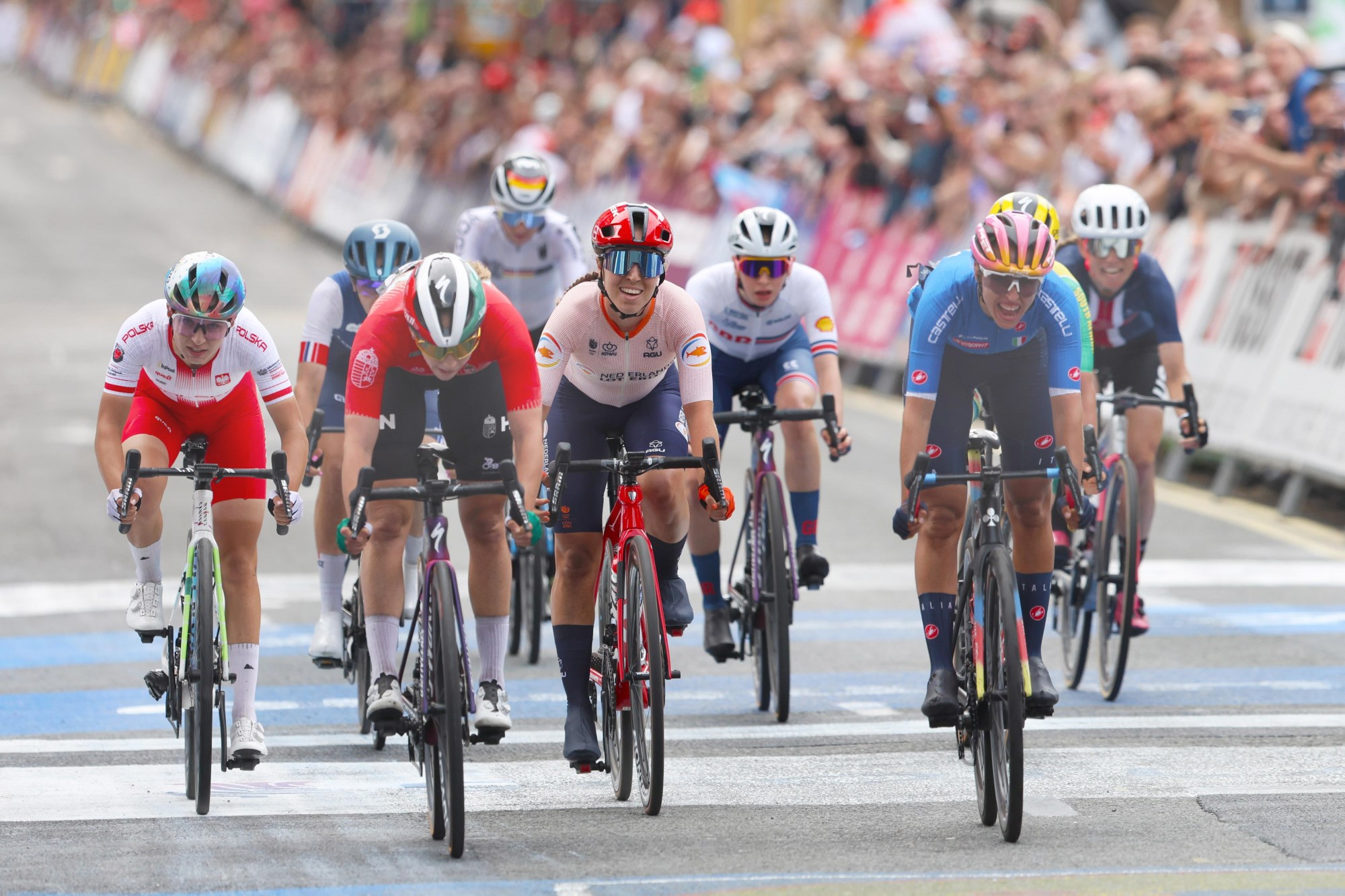 Het WK op de weg bij de vrouwen, waar de elites en de beloftes samen in actie kwamen, werd een heuse slijtageslag. Op het lokale circuit in Glasgow bleef uiteindelijk een veertigtal rensters over, waaronder nog drie die in aanmerking kwamen om de wereldtitel in de U23-categorie. Dat waren Vas, Van Anrooij en de Britse Anna Shackley.
