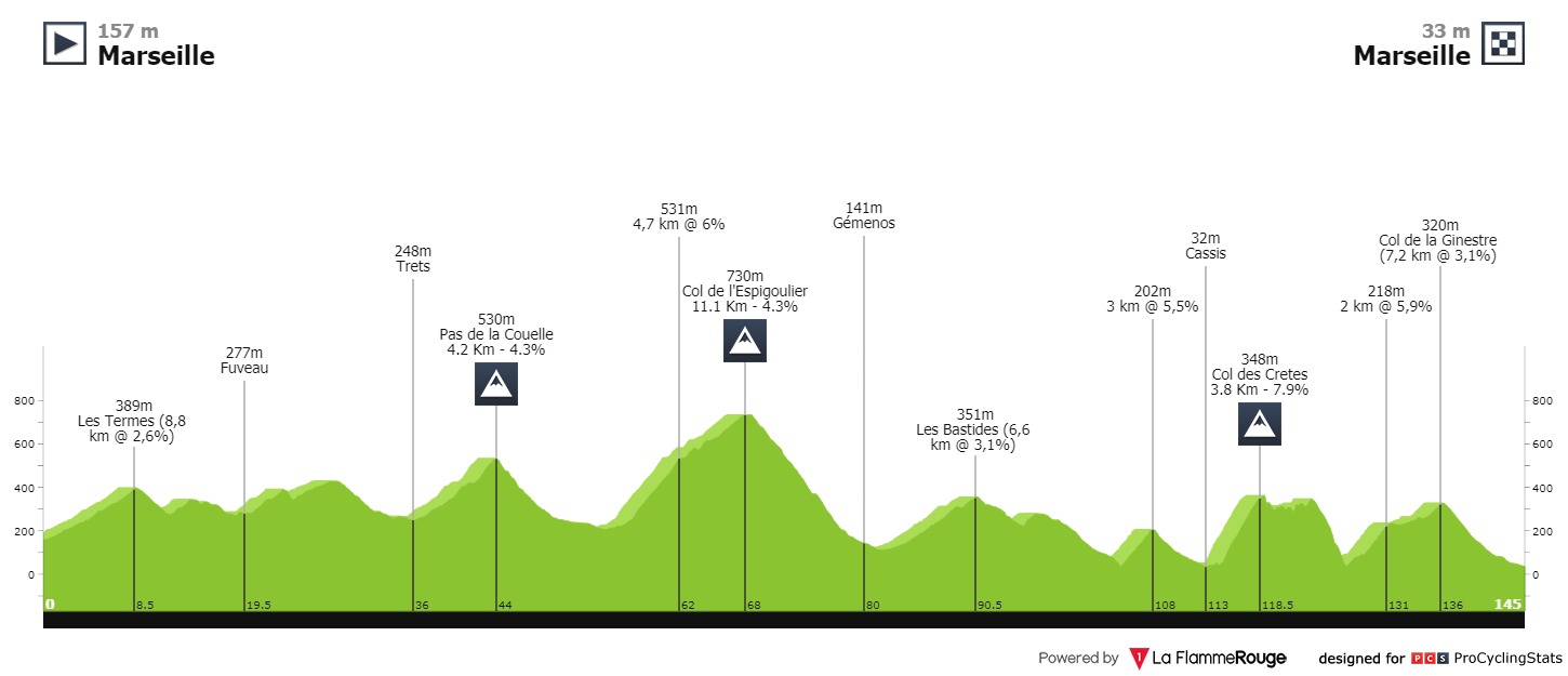 Er staan met Groupama-FDJ, AG2R La Mondiale, Cofidis en NTT Pro Cycling vier WorldTour-formaties aan de start. De renners bevinden zich in het zuiden van Frankrijk, in de buurt van havenstad Marseille, waar de start en finish is gelegen van de 41e editie van de Grand Prix Cycliste la Marseillaise.