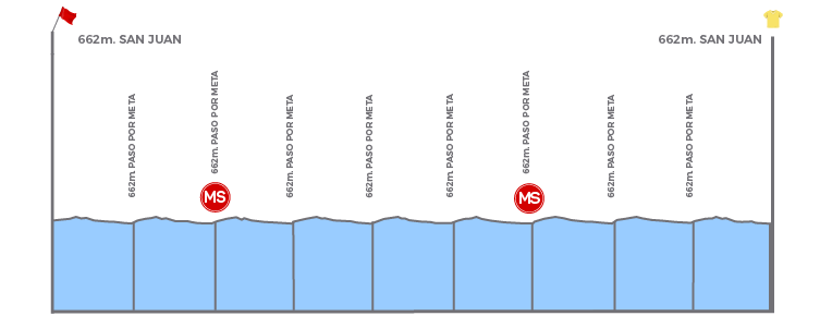 De laatste etappe is een soort criterium over de ringbaan van de stad San Juan. Elke ronde is 15,7 kilometer lang en die mogen de renners negen keer afwerken. De kans is immens groot dat dit uitdraait op een sprintersbal, dus zullen rappe mannen als Fernando Gaviria en Peter Sagan zich nog één keer opladen.