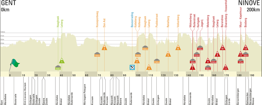 Ook al gaat dit jaar de aandacht uit naar de Muur van Geraardsbergen en de Bosberg; het wordt uitkijken naar de nieuwigheden die de organisatie heeft toegevoegd aan de route van de bijna tweehonderd kilometer lange koers. De start is ook dit jaar weer in Gent, de finish ditmaal in het centrum van Ninove. Wie komt hier als eerste over de streep?